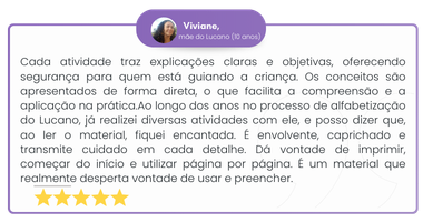 Ao adquirir o Guia Alfabetização – estimulando em casa, você terá acesso a um material estruturado, didático e funcional, desenvolvido para orientar o estímulo passo a passo, respeitando o nível de cada criança.